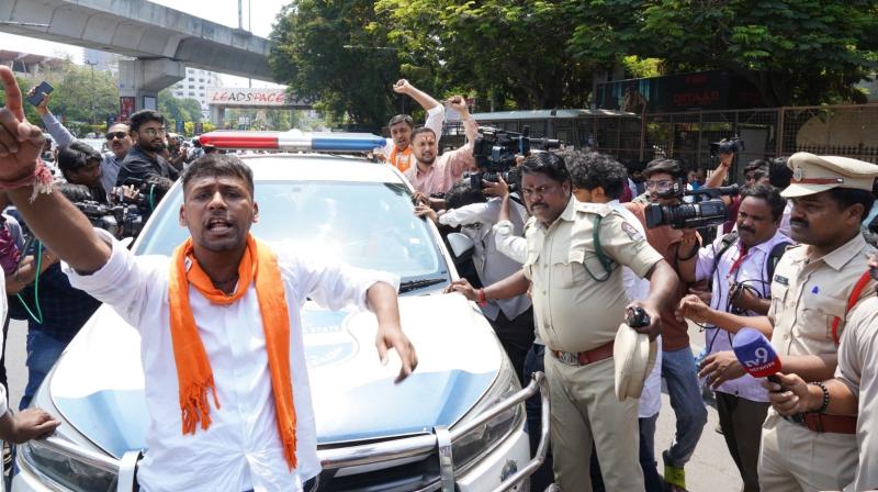भाजपा के झंडे लिए और सरकार विरोधी नारे लगाते हुए पार्टी के नेता और कार्यकर्ता विधानसभा की ओर बढ़ने की कोशिश कर रहे थे, लेकिन पुलिस ने उन्हें रोककर हिरासत में ले लिया। रामचंद्र राव को पंजागुट्टा पुलिस स्टेशन ले जाया गया।