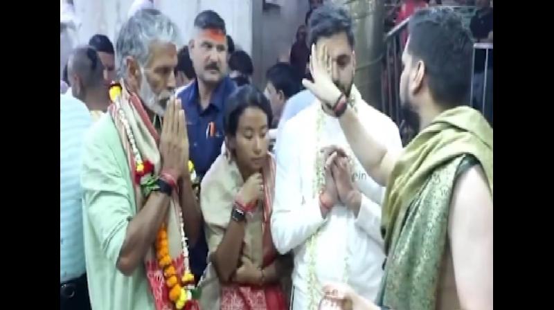 पत्नी अंकिता कुंवर के साथ बाबा महाकाल के दर्शन करने पहुंचे मिलिंद सोमन