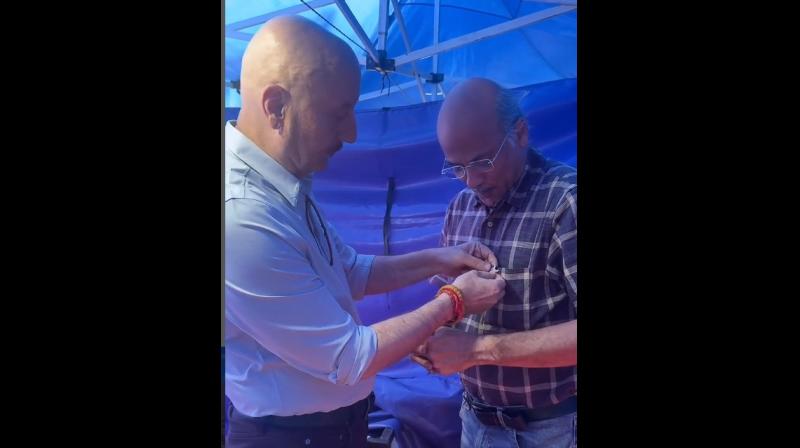 इस पोस्ट में अनुपम खेर ने एक वीडियो भी साझा की, जिसमें वह सूरज बड़जात्या की शर्ट पर भारत का एक छोटा सा सुनहरा प्रतीक लगाते नजर आते हैं।