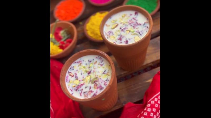 भिगोई हुई सामग्री को पानी से निकालकर मिक्सी में बारीक पीस लें। अगर जरूरत हो तो थोड़ा पानी और डालकर पेस्ट बना लें। अब एक बड़े जग में ठंडा दूध लें। इसमें यह पेस्ट अच्छे से मिलाएं। स्वाद के अनुसार चीनी या गुड़ भी मिला सकते हैं। अंत में इसमें कुछ गुलाब की पत्तियां, केसर के धागे और बर्फ के टुकड़े डालकर सर्व करें। चाहें तो ऊपर से कटे हुए बादाम, पिस्ता और काजू छिड़क दें, जिससे स्वाद और देखने में भी और अच्छे लगते हैं।