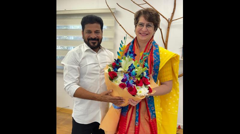 तेलांगना के मुख्यमंत्री ने प्रियंका गांधी से की मुलाकात, महिला आरक्षण संशोधन विधेयक पास न होने पर दी बधाई