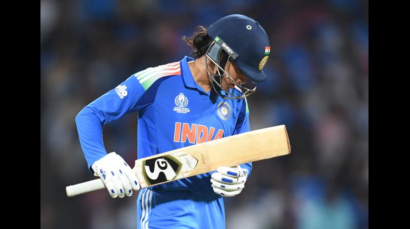 जेमिमा के पवेलियन लौटने के बाद मंधाना ने कप्तान हरमनप्रीत कौर के साथ चौथे विकेट के लिए 72 गेंदों में 48 रन जोड़कर भारत का शतक पूरा करवाया। मंधाना 68 गेंदों में 7 चौकों के साथ 58 रन बनाकर आउट हुईं, जिसके बाद कप्तान कौर ने पारी को संभाला।