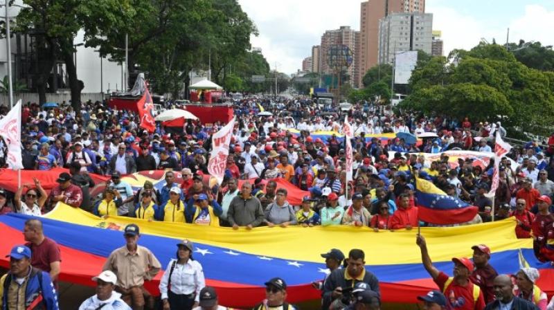वेनेजुएला ने अमेरिकी प्रतिबंधों के खिलाफ राष्ट्रीय रैली निकालकर किया प्रदर्शन